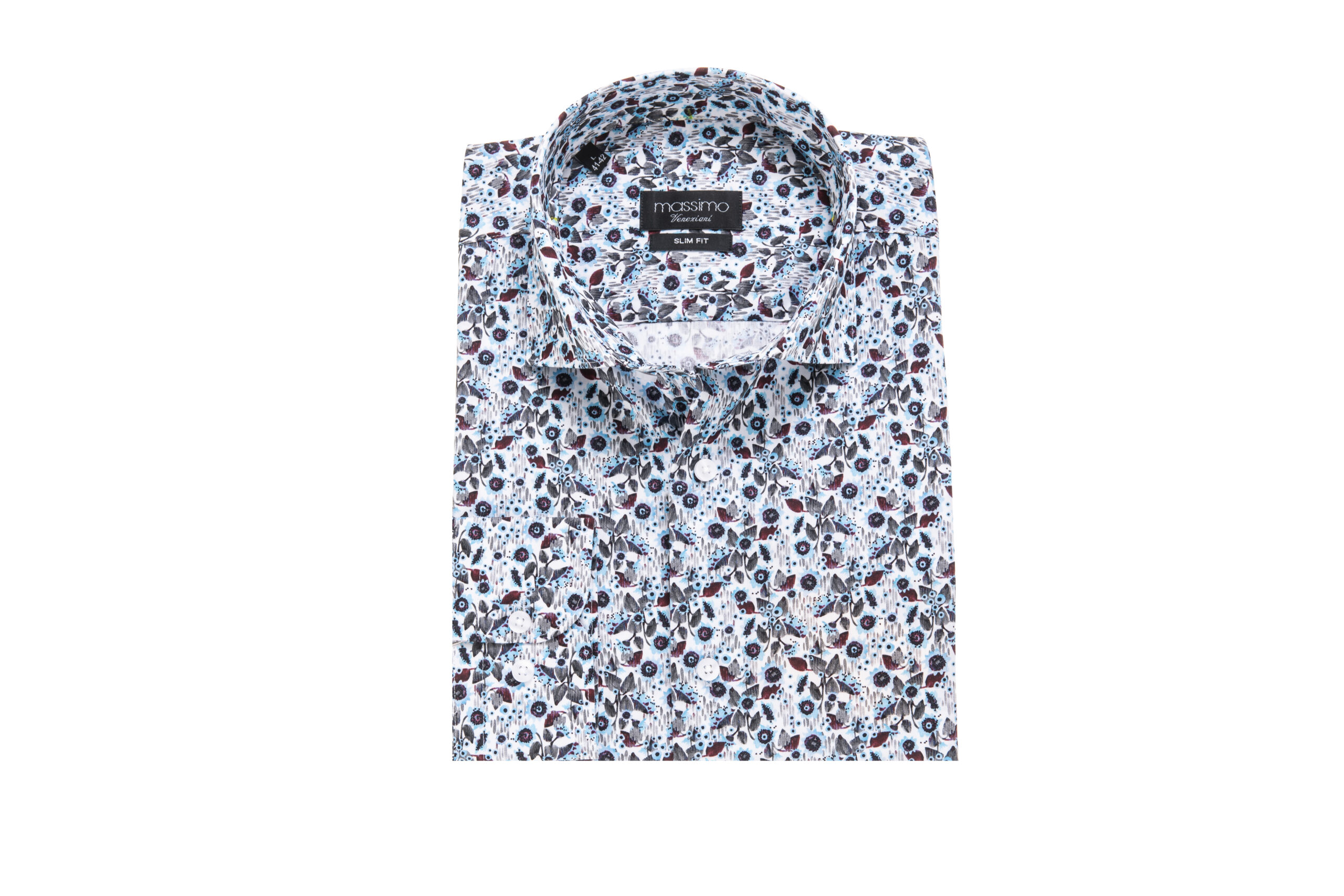 Λευκό-μπλε σκούρο φλοράλ βαμβακερό μακρυμάνικο πουκάμισο MASSIMO VENEZIANI 165.457.001.69102-474.