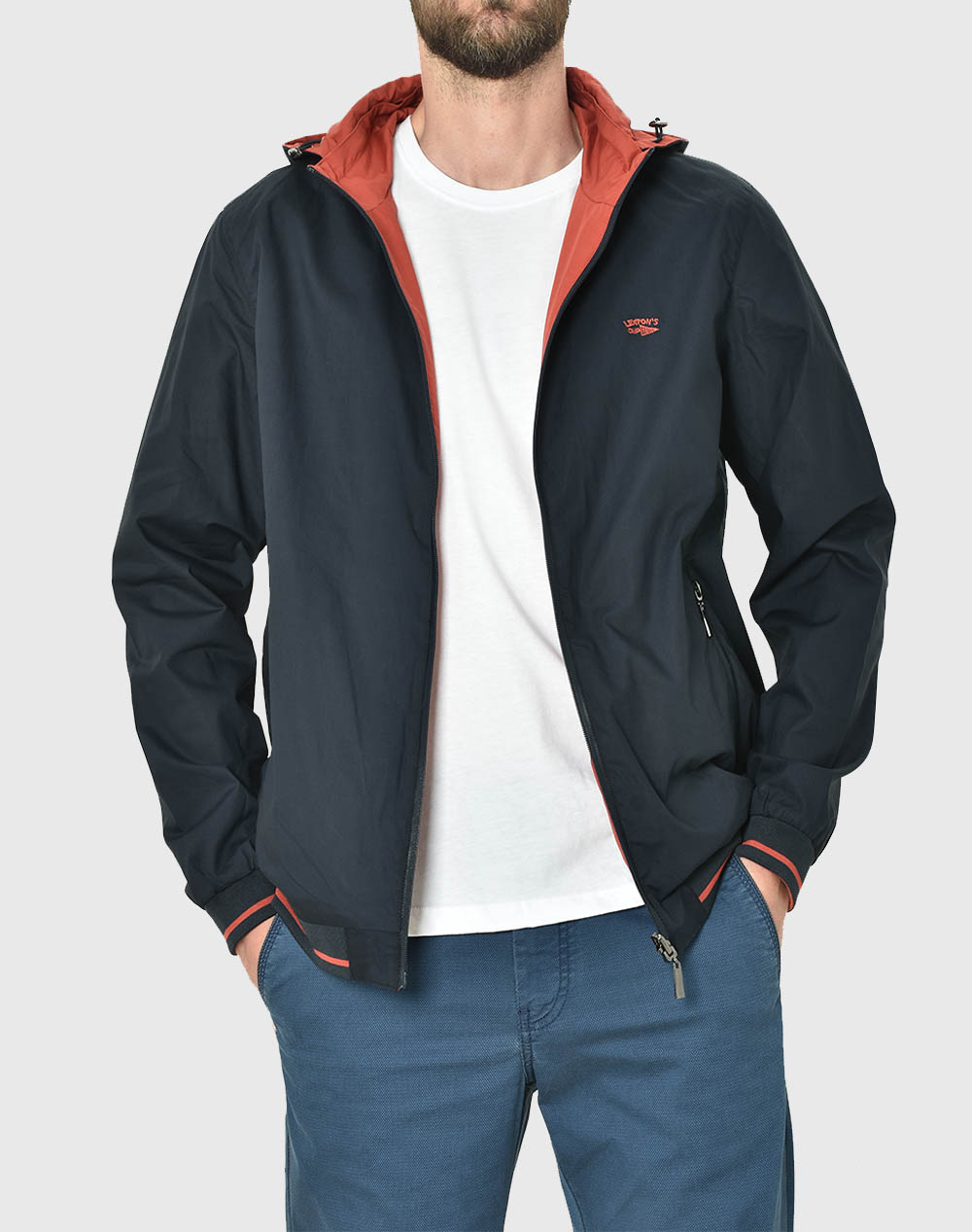 Μπλε σκούρο-κοραλί μπουφάν καλοκαιρινό διπλής όψης LEXTON 359.04/31/HOOD.001.01.