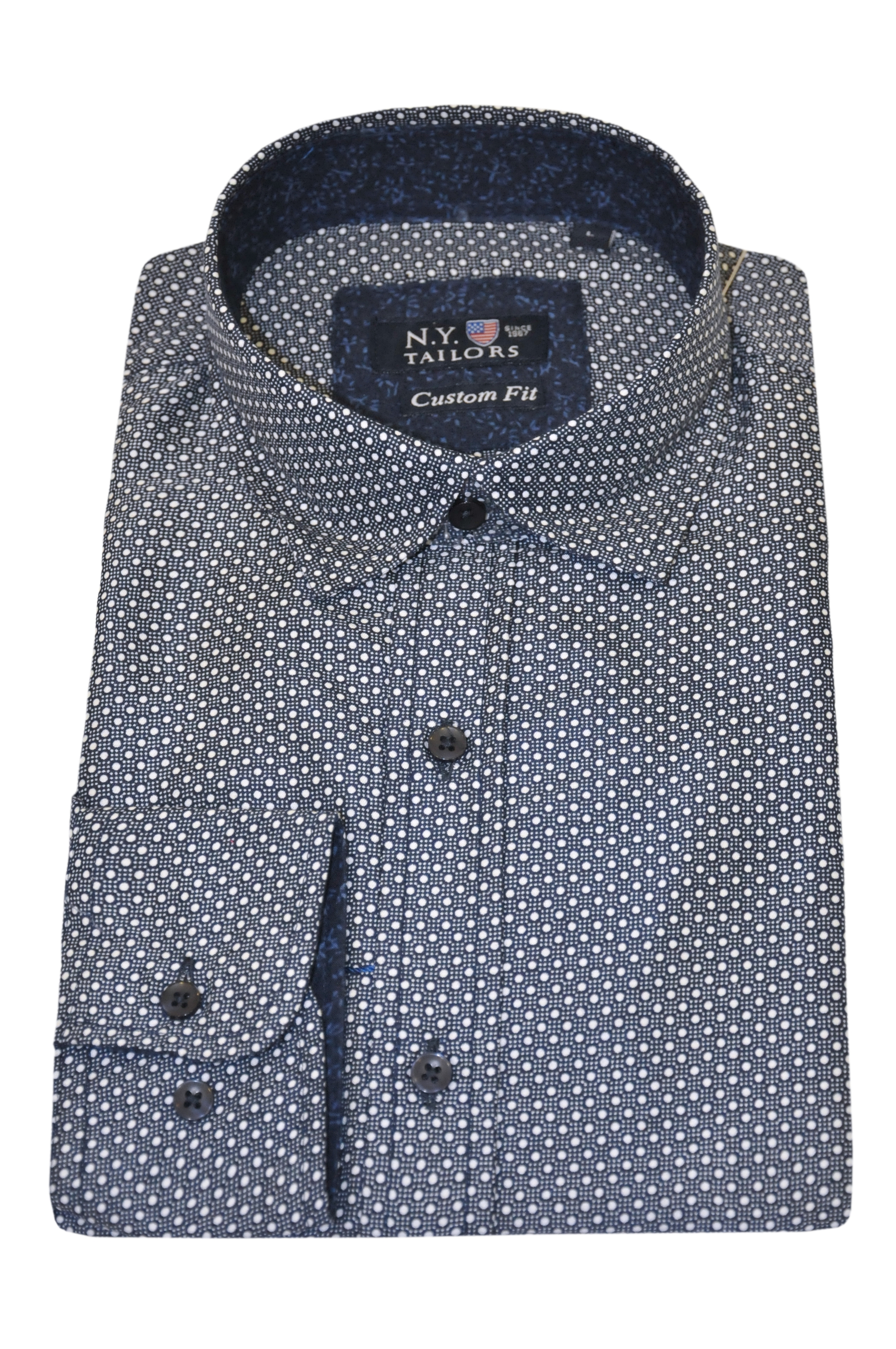 Μπλε πουά βαμβακερό μακρυμάνικο πουκάμισο NEW YORK TAILORS
