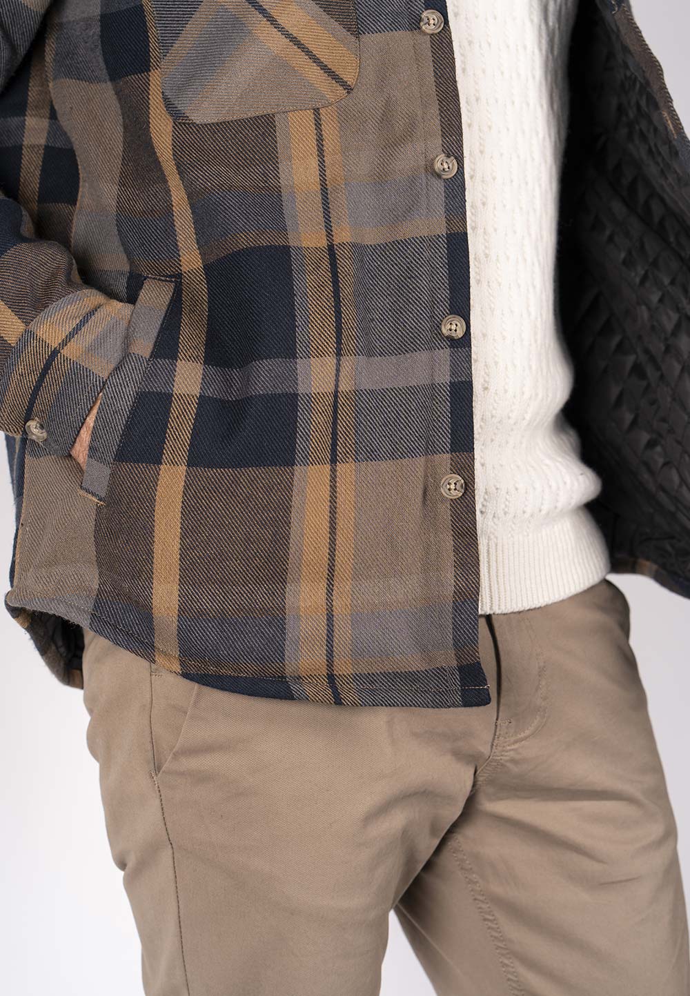 Κάμελ καρό μακρυμάνικο πουκάμισο με επένδυση PRE END